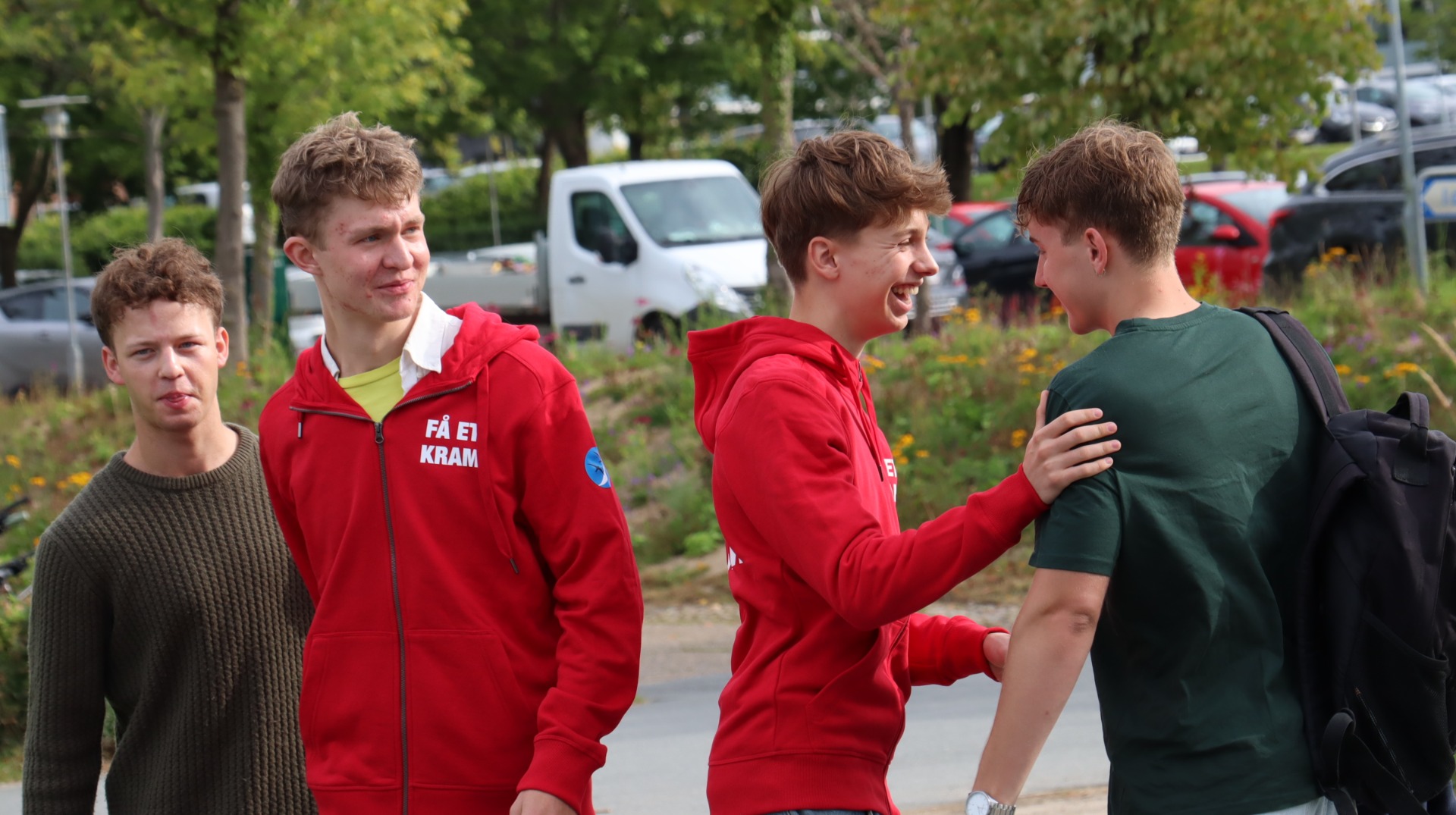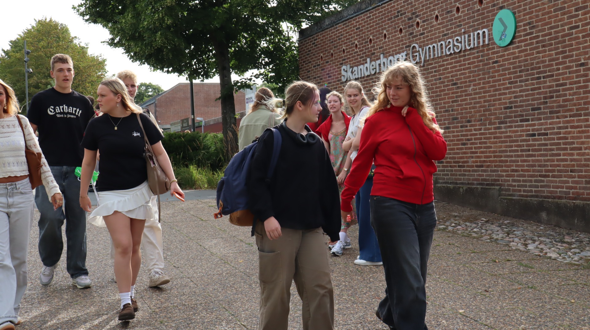 Første skoledag er tirsdag den 12. august 2025, hvor alle mødes kl. 9:30 i salen med fælles velkomst af rektor, Jakob Thulesen Dahl.