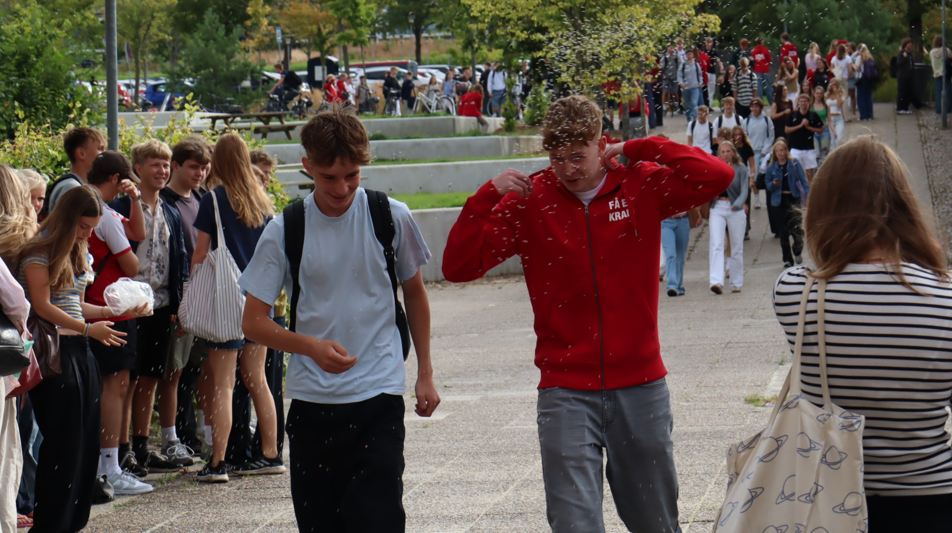 Første skoledag er en festdag, hvor de nuværende elever traditionen tro byder de nye elever velkommen ved at kaste ris for at bane vej for lykke og gode kræfter til de nye studerende.
